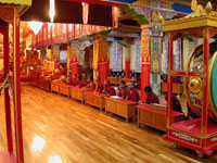with beautiful intricate thangkas and the impressive gold - plated ,